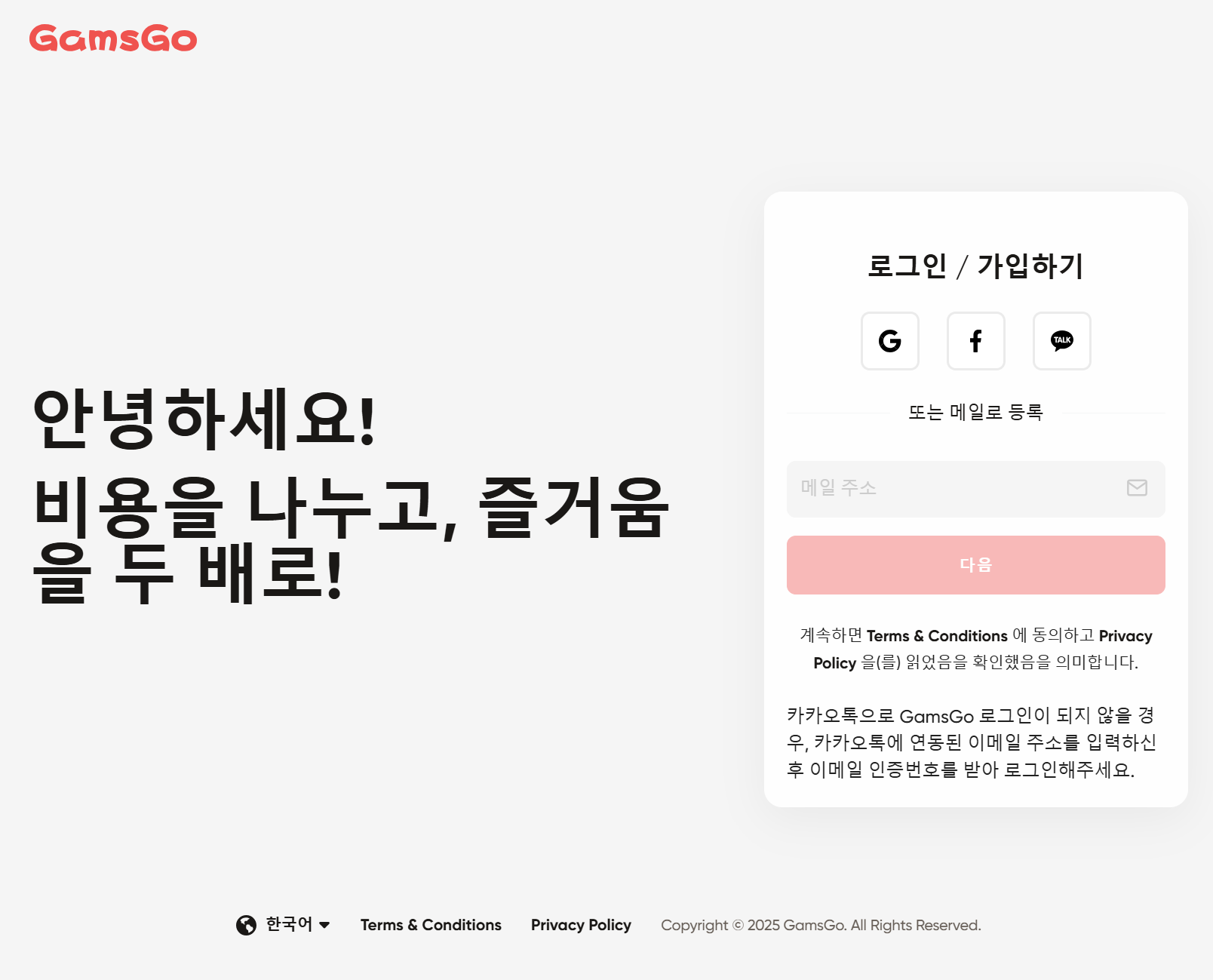 2️⃣ 구글, 카카오톡, 페이스북 계정으로 간편 가입하시거나 이메일 주소를 이용하여 가입합니다.