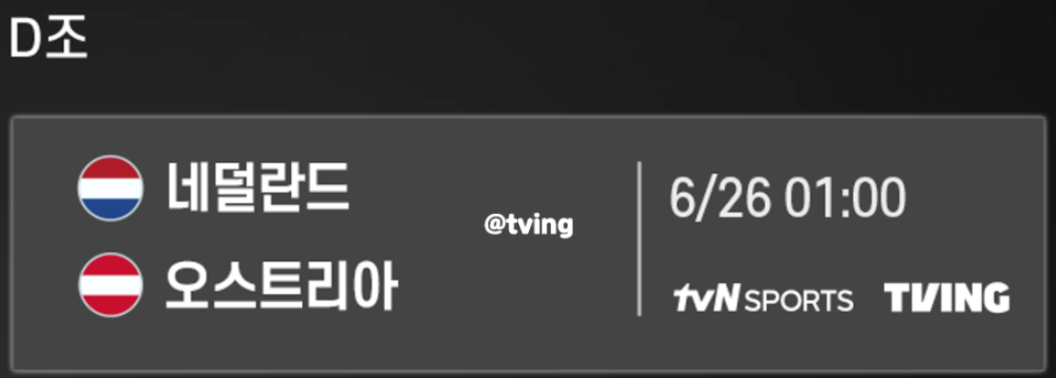 - 경기일정 : 6월 26일 (수) 오전 1시 네덜란드 vs 오스트리아