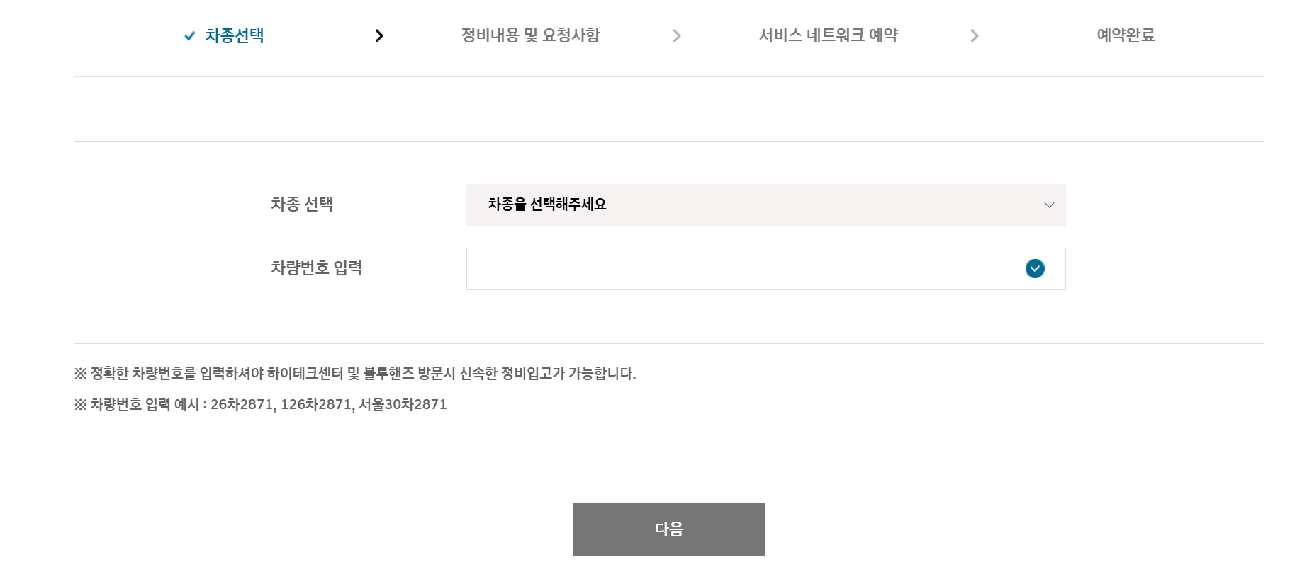 - 예약 시 차량 모델을 명확히 전달하여 수리가 가능한 지점에서 예약을 진행하세요.