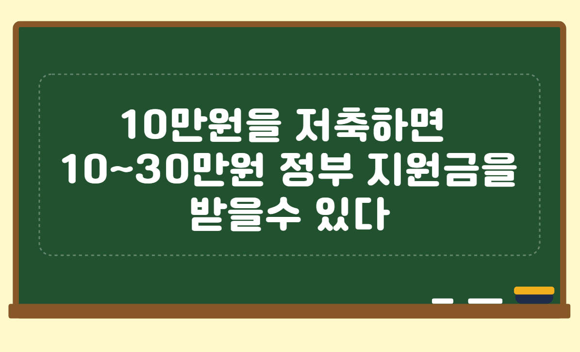 정부 보조금: 매달 10만원을 저축한다면, 정부는 매달 10만 원에서 30만 원을 제공할 것이고, 3년 동안 총 1,080만 원을 줄 것입니다. 보조금의 비율은 여러분의 소득 수준에 따라 다를 것입니다
